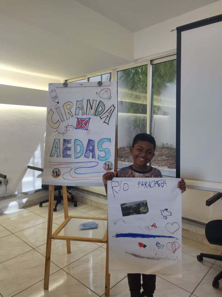 Durante o encontro, ocorreu a Ciranda. No espaço, conduzido pela equipe de Pedagogia da Aedas, é possível trabalhar o lúdico e envolver as crianças no processo de sistematização dos danos causados pelo rompimento da barragem, possibilitando também uma melhor participação das mães, pais e responsáveis nos espaços de discussão construídos pelos atingidos e atingidas com a Aedas.