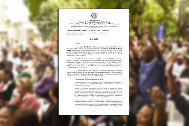 O juízo da 2ª Vara da Fazenda Pública e Autarquias da comarca de Belo Horizonte-MG concedeu, através de decisão liminar, a suspensão do Processo Administrativo movido pelas Instituições de Justiça contra Aedas. Suspendendo, assim, todos os efeitos da decisão tomada pelas IJs em 5 de setembro de 2025, inclusive rescisão do termo de compromisso firmado com a ATI das regiões 1 e 2.